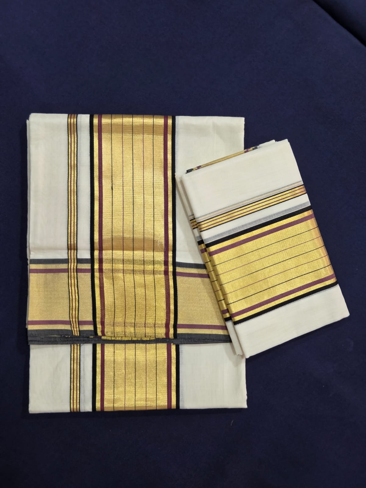 BORDER 4.00 INCH ARTIFICIAL GOLDEN KASAVU WITH MEROON AND BLACK COLOR BORDER