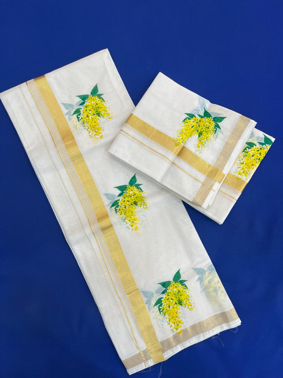 TRADITIONAL KANIKONNA PRINTED SETMUNDU